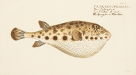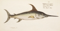 魚類学者マルクス・エリエゼル・ブロッホ(1723-1799)が著した本書は、18世紀当時知られていた世界の魚の図版をおよそ200点収録したもの。従来は地面に横たえた状態で描かれていた魚の絵から背景を省略し魚のみを精密に描写した本書の図版は、その後の図鑑表現の原点ともなった歴史的に重要な作品です。