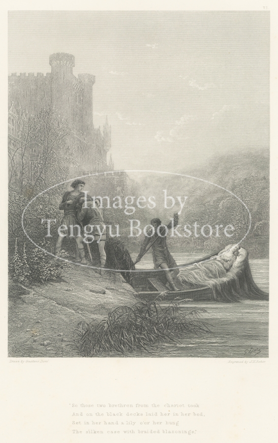 アーサー王伝説を題材にした本作「エレイン」は、後に全12作となる「国王牧歌」の最初に発表された 4作品のうちのひとつ。 19世紀フランスの挿絵画家の大家ギュスターヴ・ドレ(1832-1883)の緻密な描写によって、中世イギリスのロマンチックで神秘的な伝説世界が表現されています。