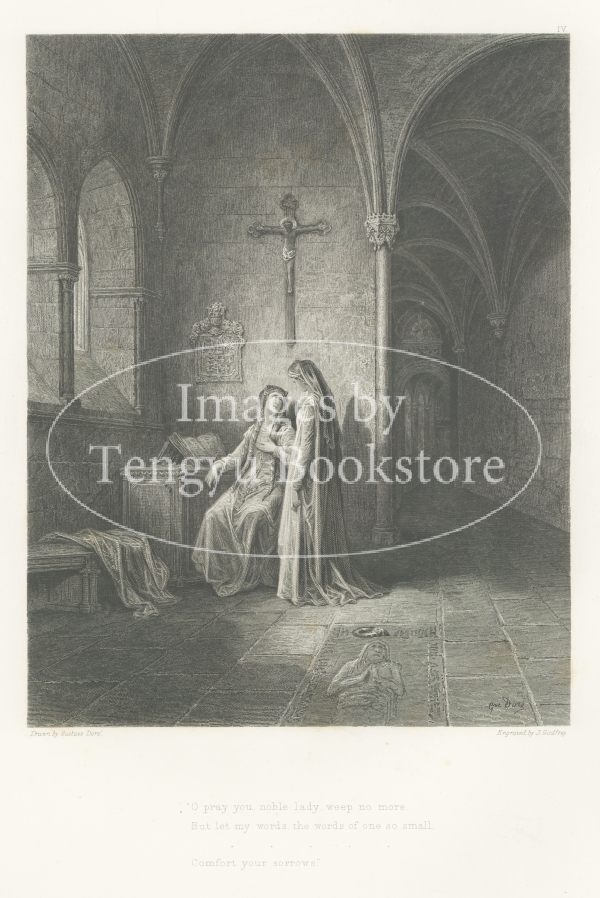 アーサー王伝説を題材にした本作「グィネヴィア」は、後に全12作となる「国王牧歌」の最初に発表された 4作品のうちのひとつ。 19世紀フランスの挿絵画家の大家ギュスターヴ・ドレ(1832-1883)の緻密な描写によって、中世イギリスのロマンチックで神秘的な伝説世界が表現されています。