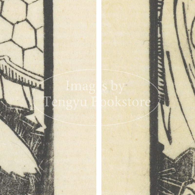 本来は2枚に分けて描かれた作品であるため、色味や図案の整合に若干の不統一があることをご了承ください。