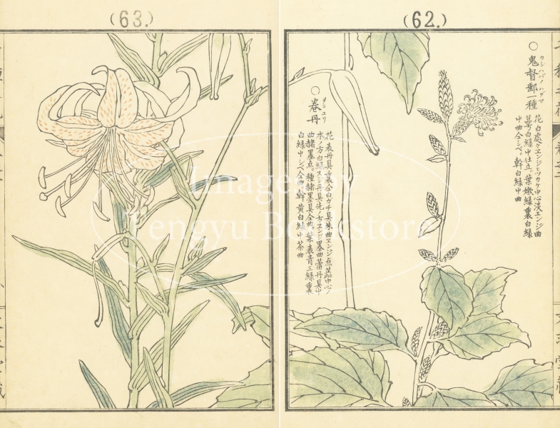江戸時代末期から明治時代初期にかけて活躍した日本画家 幸野楳嶺(こうの ばいれい : 1844-1895)による、草花の絵手本集中の1ページ。