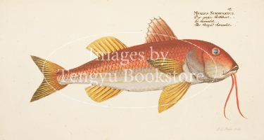 魚類学者マルクス・エリエゼル・ブロッホ(1723-1799)が著した本書は、18世紀当時知られていた世界の魚の図版をおよそ200点収録したもの。従来は地面に横たえた状態で描かれていた魚の絵から背景を省略し魚のみを精密に描写した本書の図版は、その後の図鑑表現の原点ともなった歴史的に重要な作品です。