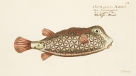 魚類学者マルクス・エリエゼル・ブロッホ(1723-1799)が著した本書は、18世紀当時知られていた世界の魚の図版をおよそ200点収録したもの。従来は地面に横たえた状態で描かれていた魚の絵から背景を省略し魚のみを精密に描写した本書の図版は、その後の図鑑表現の原点ともなった歴史的に重要な作品です。