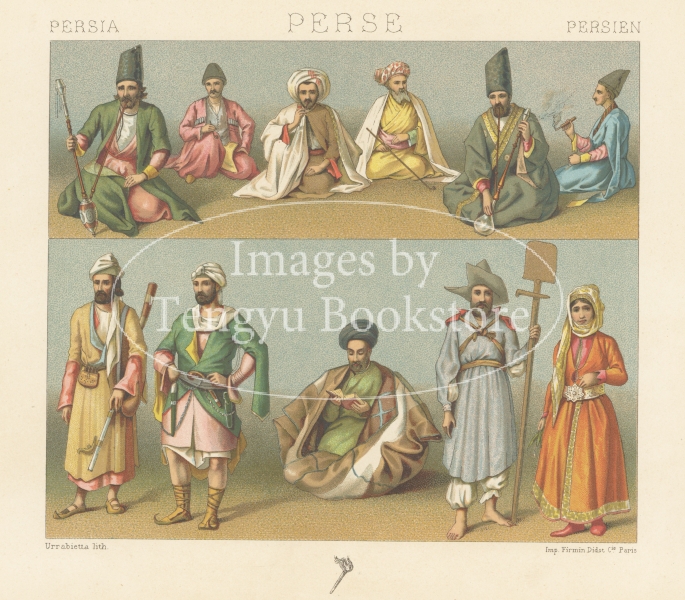 多色刷石版によってカラー印刷された、世界の歴史的衣装や民族衣装の図は、資料的な価値はもちろん、美術的にも評価の高い貴重なイラストです。