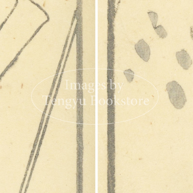 本来は2枚に分けて描かれた作品であるため、色味や図案の整合に若干の不統一があることをご了承ください。