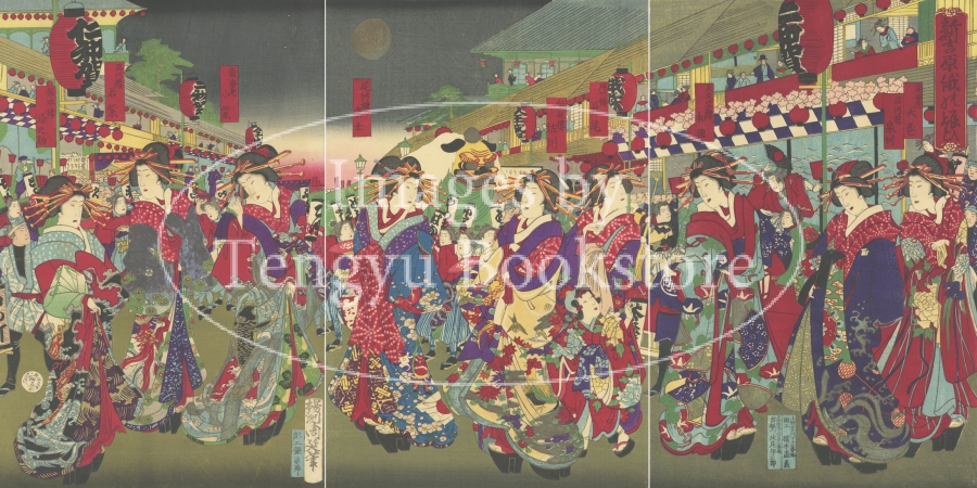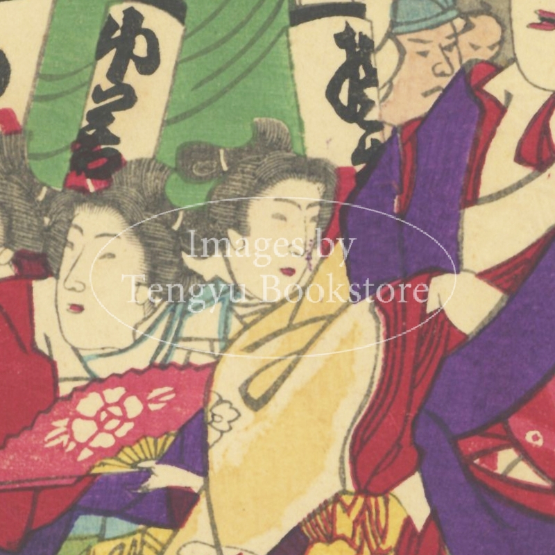 江戸末期~明治の浮世絵師 楊洲周延(ようしゅうちかのぶ:1838-1912)による三枚続の浮世絵。