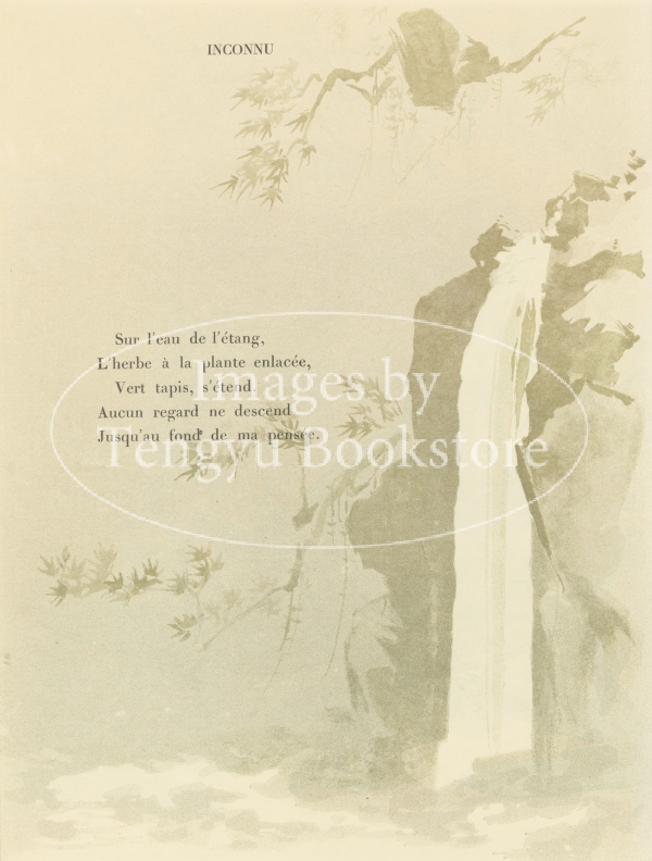 19世紀末フランスで刊行された和歌集「蜻蛉集」(せいれいしゅう)。19世紀フランスの文豪テオフィル・ゴーティエの娘ジュディット・ゴーティエ(1850 - 1917)が、当時フランスに留学していた後の内閣総理大臣 西園寺公望(1849-1940)と共同で仏訳した和歌に、同じくフランス留学中だった日本画家 山本芳翠(1850-1906)による挿絵を合わせたもの。日本文化への関心が熱狂的に高まっていたパリで高く評価されたジャポニスム挿絵本です。