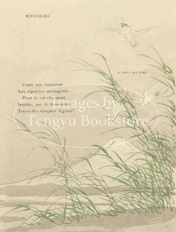 19世紀末フランスで刊行された和歌集「蜻蛉集」(せいれいしゅう)。19世紀フランスの文豪テオフィル・ゴーティエの娘ジュディット・ゴーティエ(1850 - 1917)が、当時フランスに留学していた後の内閣総理大臣 西園寺公望(1849-1940)と共同で仏訳した和歌に、同じくフランス留学中だった日本画家 山本芳翠(1850-1906)による挿絵を合わせたもの。日本文化への関心が熱狂的に高まっていたパリで高く評価されたジャポニスム挿絵本です。