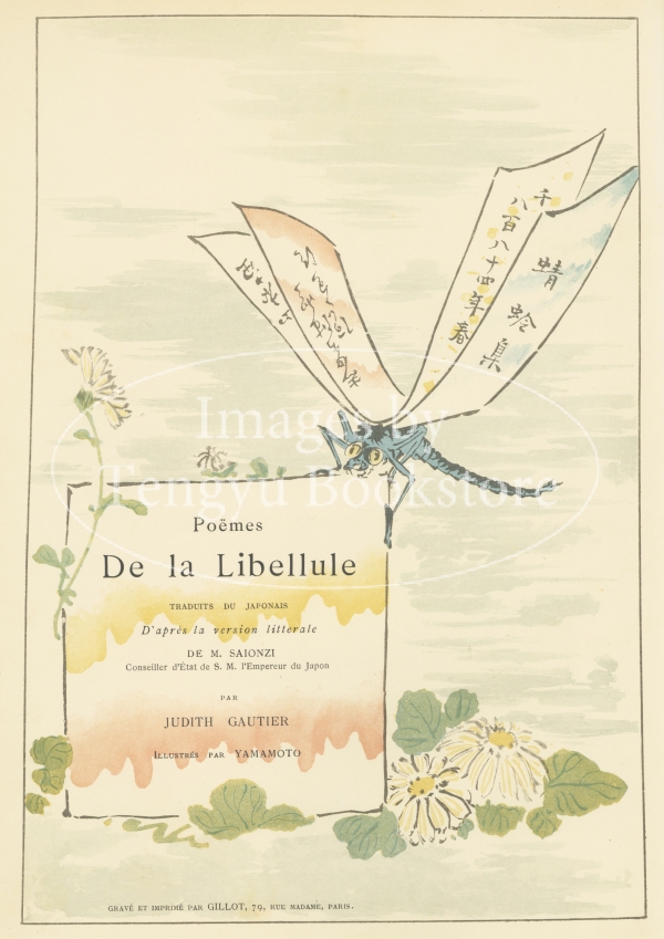 19世紀末フランスで刊行された和歌集「蜻蛉集」(せいれいしゅう)。19世紀フランスの文豪テオフィル・ゴーティエの娘ジュディット・ゴーティエ(1850 - 1917)が、当時フランスに留学していた後の内閣総理大臣 西園寺公望(1849-1940)と共同で仏訳した和歌に、同じくフランス留学中だった日本画家 山本芳翠(1850-1906)による挿絵を合わせたもの。日本文化への関心が熱狂的に高まっていたパリで高く評価されたジャポニスム挿絵本です。