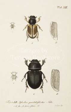18-19世紀ドイツの博物学者ヤーコブ・シュトルム(1771-1848)の主著「ドイツ動物誌」中の昆虫編の一図。細密な手彩色銅版図をもちいて、ドイツに生息する昆虫を紹介したドイツ博物学書の名作。