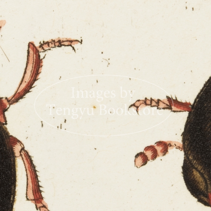 18-19世紀ドイツの博物学者ヤーコブ・シュトルム(1771-1848)の主著「ドイツ動物誌」中の昆虫編の一図。細密な手彩色銅版図をもちいて、ドイツに生息する昆虫を紹介したドイツ博物学書の名作。
