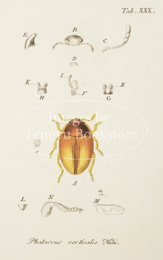 18-19世紀ドイツの博物学者ヤーコブ・シュトルム(1771-1848)の主著「ドイツ動物誌」中の昆虫編の一図。細密な手彩色銅版図をもちいて、ドイツに生息する昆虫を紹介したドイツ博物学書の名作。