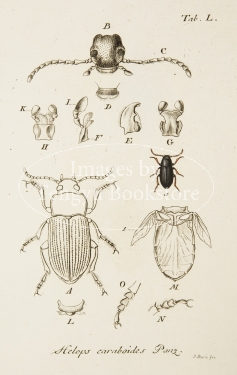 18-19世紀ドイツの博物学者ヤーコブ・シュトルム(1771-1848)の主著「ドイツ動物誌」中の昆虫編の一図。細密な手彩色銅版図をもちいて、ドイツに生息する昆虫を紹介したドイツ博物学書の名作。