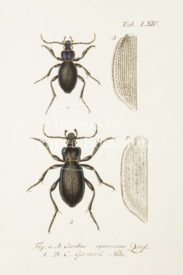 18-19世紀ドイツの博物学者ヤーコブ・シュトルム(1771-1848)の主著「ドイツ動物誌」中の昆虫編の一図。細密な手彩色銅版図をもちいて、ドイツに生息する昆虫を紹介したドイツ博物学書の名作。