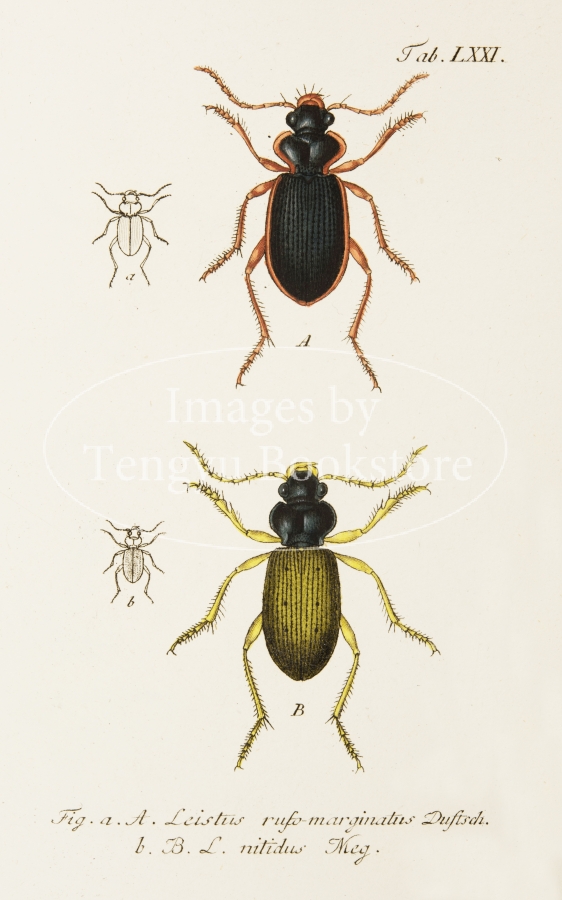 18-19世紀ドイツの博物学者ヤーコブ・シュトルム(1771-1848)の主著「ドイツ動物誌」中の昆虫編の一図。細密な手彩色銅版図をもちいて、ドイツに生息する昆虫を紹介したドイツ博物学書の名作。