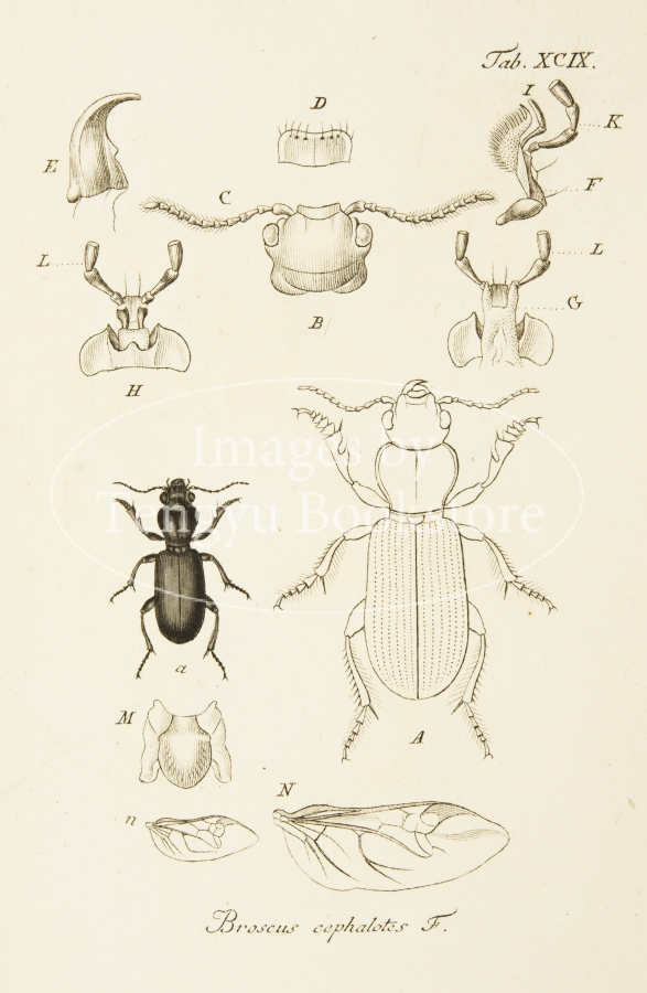 18-19世紀ドイツの博物学者ヤーコブ・シュトルム(1771-1848)の主著「ドイツ動物誌」中の昆虫編の一図。細密な手彩色銅版図をもちいて、ドイツに生息する昆虫を紹介したドイツ博物学書の名作。