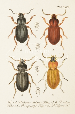 18-19世紀ドイツの博物学者ヤーコブ・シュトルム(1771-1848)の主著「ドイツ動物誌」中の昆虫編の一図。細密な手彩色銅版図をもちいて、ドイツに生息する昆虫を紹介したドイツ博物学書の名作。