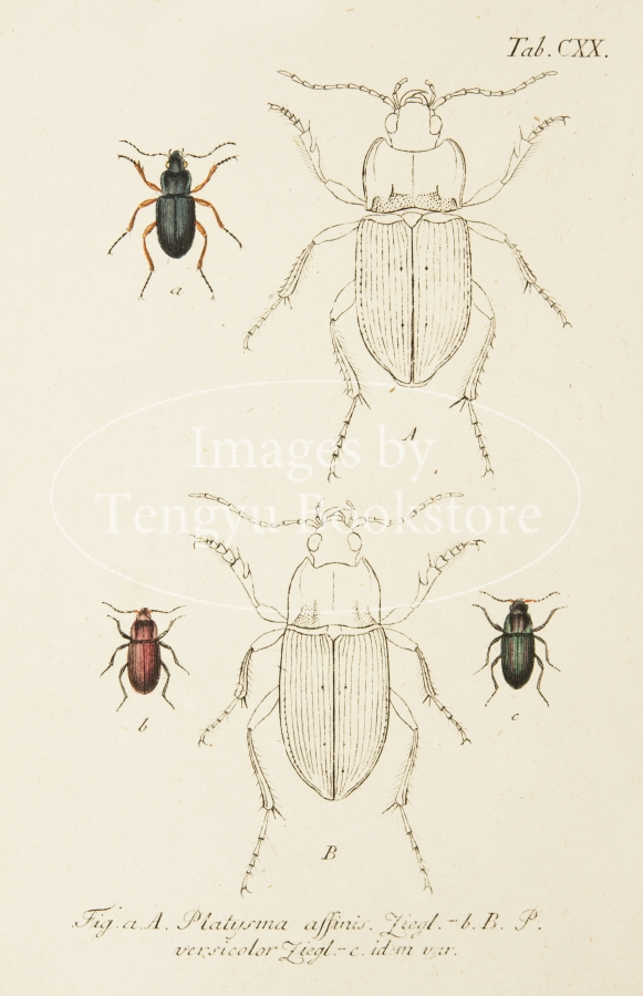 18-19世紀ドイツの博物学者ヤーコブ・シュトルム(1771-1848)の主著「ドイツ動物誌」中の昆虫編の一図。細密な手彩色銅版図をもちいて、ドイツに生息する昆虫を紹介したドイツ博物学書の名作。