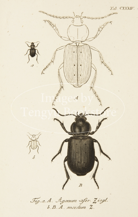 18-19世紀ドイツの博物学者ヤーコブ・シュトルム(1771-1848)の主著「ドイツ動物誌」中の昆虫編の一図。細密な手彩色銅版図をもちいて、ドイツに生息する昆虫を紹介したドイツ博物学書の名作。