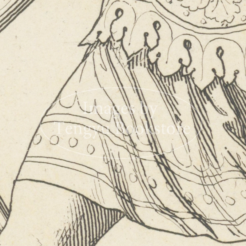 19世紀フランスで刊行された中世~ルネサンス期イタリアの服飾図集「13,14,15世紀の服飾」の1図。本書は中世~ルネサンス期イタリアの絵画や彫刻から抜粋した服飾の図版に解説を加えた西洋服飾史書の古典。