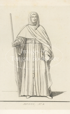 19世紀フランスで刊行された中世~ルネサンス期イタリアの服飾図集「13,14,15世紀の服飾」の1図。本書は中世~ルネサンス期イタリアの絵画や彫刻から抜粋した服飾の図版に解説を加えた西洋服飾史書の古典。