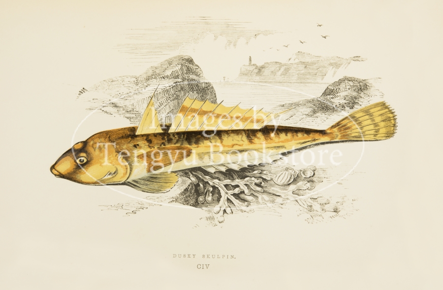 19世紀イギリスの博物学者ジョナサン・クーチ(1789–1870)の主著「ブリテン諸島魚類誌」の挿絵。グレート・ブリテン島やアイルランド島をはじめ、大小様々な島で構成されたブリテン諸島に生息する魚類を精緻な色刷木口木版画で表現した博物図鑑の名作です。