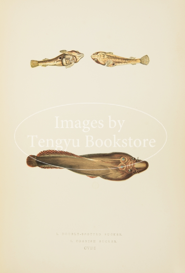 19世紀イギリスの博物学者ジョナサン・クーチ(1789–1870)の主著「ブリテン諸島魚類誌」の挿絵。グレート・ブリテン島やアイルランド島をはじめ、大小様々な島で構成されたブリテン諸島に生息する魚類を精緻な色刷木口木版画で表現した博物図鑑の名作です。