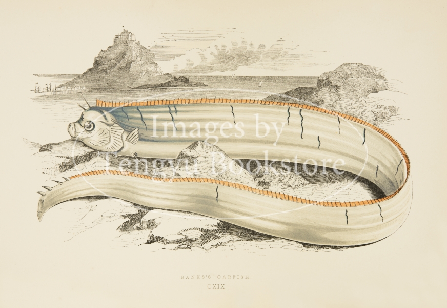19世紀イギリスの博物学者ジョナサン・クーチ(1789–1870)の主著「ブリテン諸島魚類誌」の挿絵。グレート・ブリテン島やアイルランド島をはじめ、大小様々な島で構成されたブリテン諸島に生息する魚類を精緻な色刷木口木版画で表現した博物図鑑の名作です。
