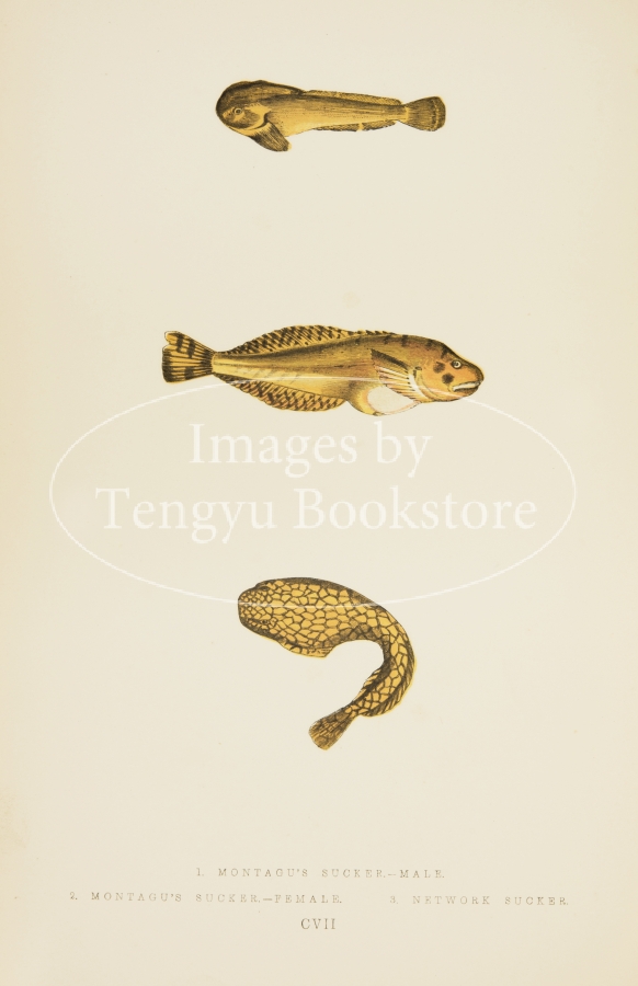 19世紀イギリスの博物学者ジョナサン・クーチ(1789–1870)の主著「ブリテン諸島魚類誌」の挿絵。グレート・ブリテン島やアイルランド島をはじめ、大小様々な島で構成されたブリテン諸島に生息する魚類を精緻な色刷木口木版画で表現した博物図鑑の名作です。