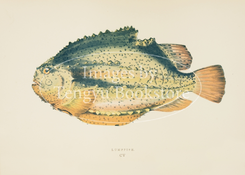 19世紀イギリスの博物学者ジョナサン・クーチ(1789–1870)の主著「ブリテン諸島魚類誌」の挿絵。グレート・ブリテン島やアイルランド島をはじめ、大小様々な島で構成されたブリテン諸島に生息する魚類を精緻な色刷木口木版画で表現した博物図鑑の名作です。