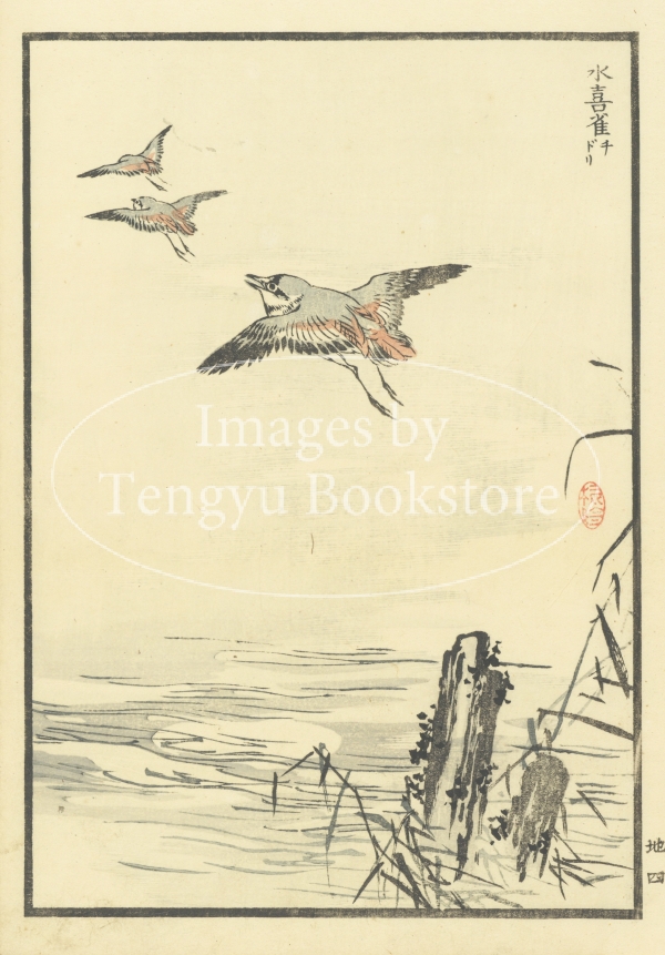 江戸時代末期から明治時代初期にかけて活躍した日本画家 幸野楳嶺(こうの ばいれい : 1844-1895)による、花鳥画の絵手本集中の1ページ。
