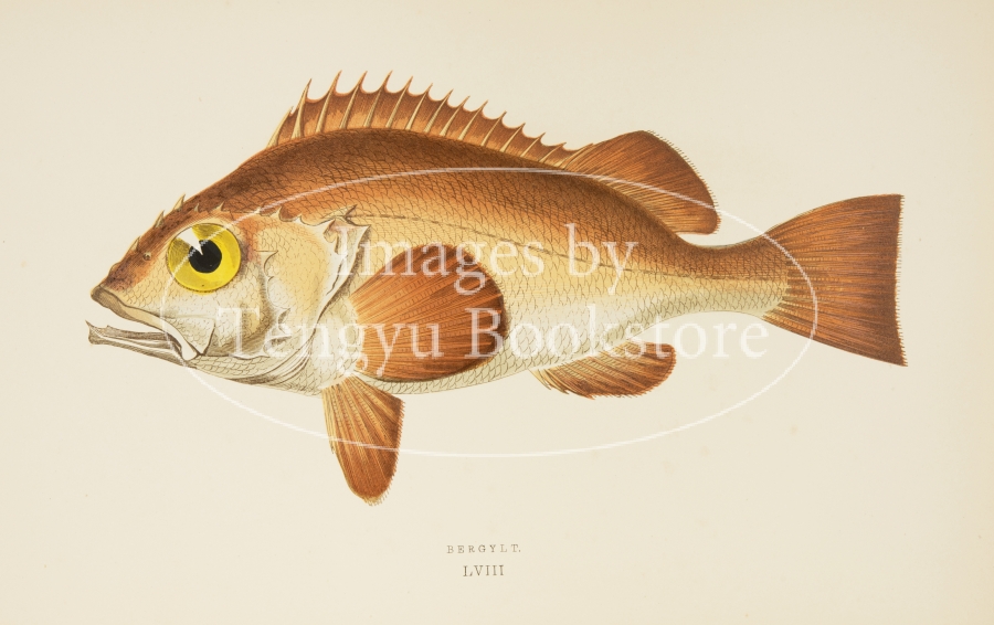 19世紀イギリスの博物学者ジョナサン・クーチ(1789–1870)の主著「ブリテン諸島魚類誌」の挿絵。グレート・ブリテン島やアイルランド島をはじめ、大小様々な島で構成されたブリテン諸島に生息する魚類を精緻な色刷木口木版画で表現した博物図鑑の名作です。