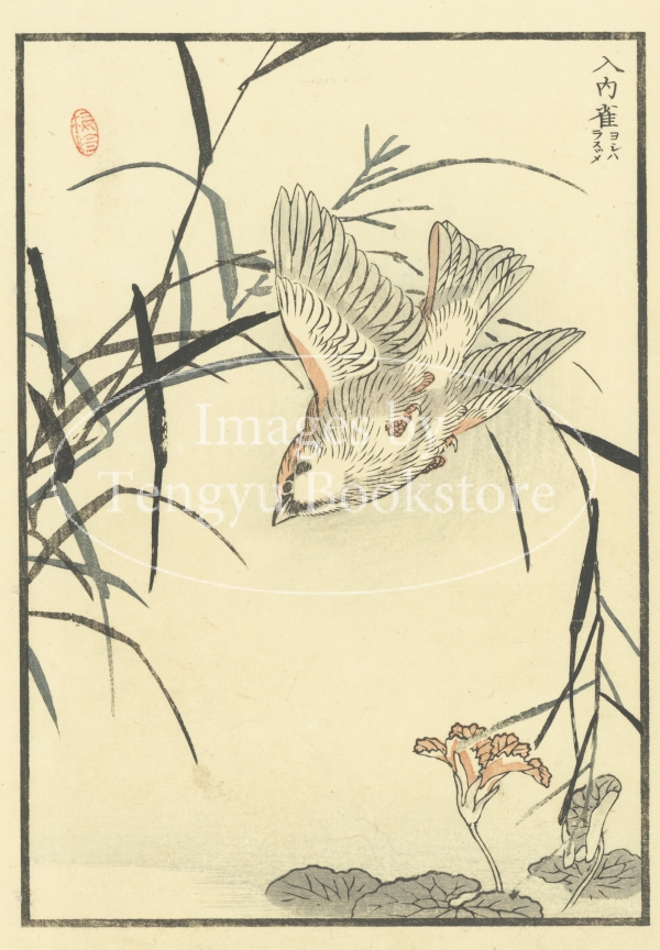 江戸時代末期から明治時代初期にかけて活躍した日本画家 幸野楳嶺(こうの ばいれい : 1844-1895)による、花鳥画の絵手本集中の1ページ。