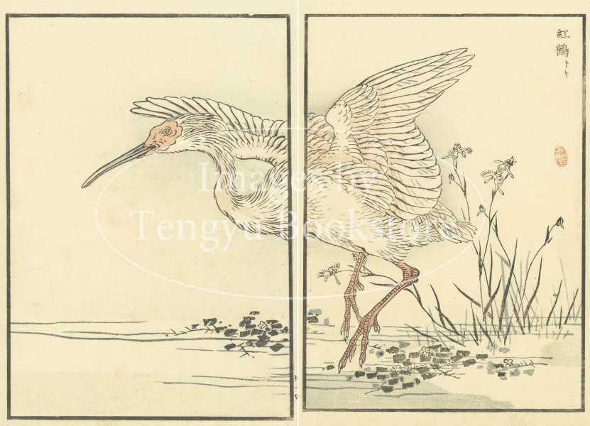 江戸時代末期から明治時代初期にかけて活躍した日本画家 幸野楳嶺(こうの ばいれい : 1844-1895)による、花鳥画の絵手本集中の1ページ。