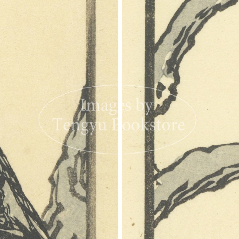 本来は2枚に分けて描かれた作品であるため、色味や図案の整合に若干の不統一があることをご了承ください。