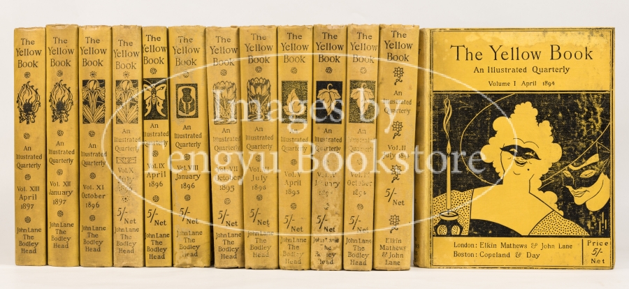 No 19137 / 書名:イエローブック / The Yellow Book / 刊行国:UK / 刊行年:1894 19世紀イギリスの芸術雑誌「イエロー・ブック」の書影。ヴィクトリア朝後期イギリスを代表する画家オーブリー・ビアズリー(1872-1898)が創設に加わったことで知られる本書は、世紀末イギリスにおけるデカダンス芸術運動の象徴として重要な雑誌。その名の通り黄色いクロス表紙に、黒を利かせたイラストを配した装丁が特徴的で、とりわけビアズリーが表紙画や本文イラストを描いた初期の号(Vol.1-4)は、今なお高い人気を誇ります。