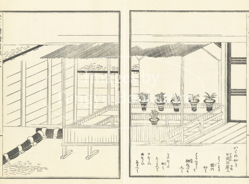 江戸時代後期に刊行された園芸指南書「金生樹譜 別録」からの一枚。江戸後期から明治にかけての故実研究家 長生舎主人(栗原信充:1794-1870)による本書は、当時流行した万年青(おもと)やセッコク、松葉蘭などをはじめ、様々な園芸植物の手入れから道具の種類までを絵入りで解説したもの。
