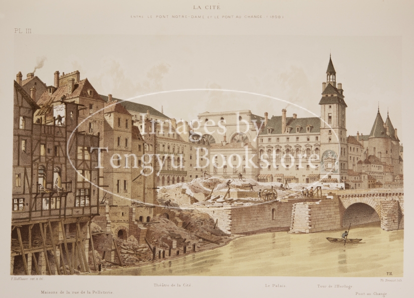 19世紀末フランスの歴史書「パリの変遷」の挿絵。紀元前より続く長い歴史を持つパリの様々な名所旧跡を、各時代ごとの様子を描いた風景画とともに紹介したパリ名所史書。