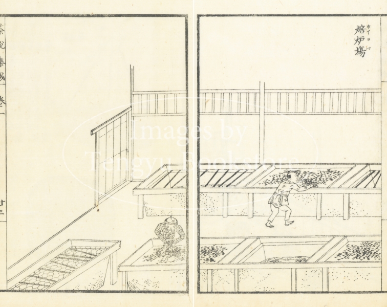 明治初期に刊行されたお茶製造の解説書「茶説集成」からの一枚。茶の木の栽培から製茶の方法まで、お茶に関する当時の知識がまとめられた農書です。