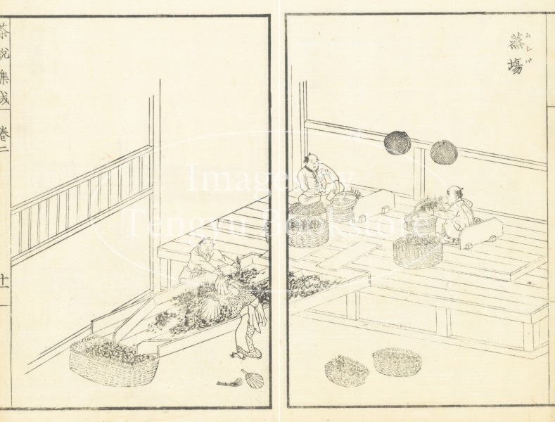 明治初期に刊行されたお茶製造の解説書「茶説集成」からの一枚。茶の木の栽培から製茶の方法まで、お茶に関する当時の知識がまとめられた農書です。