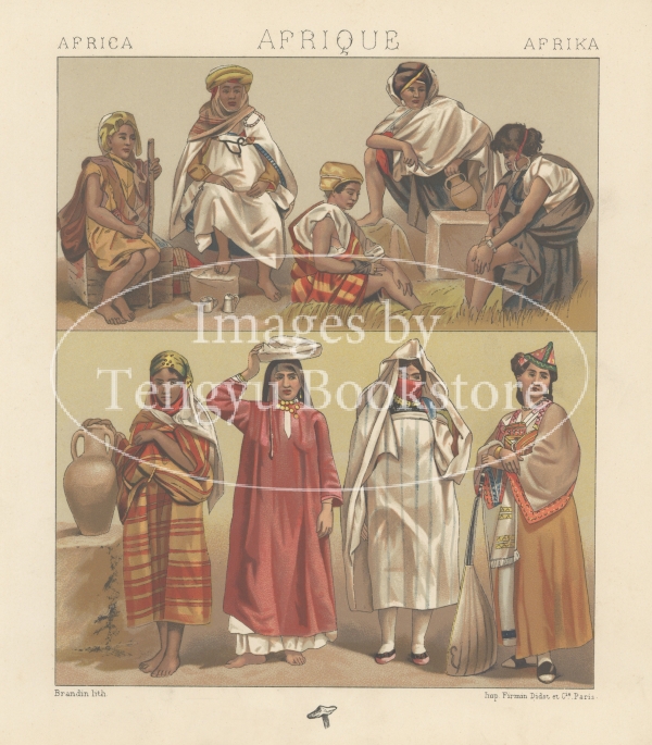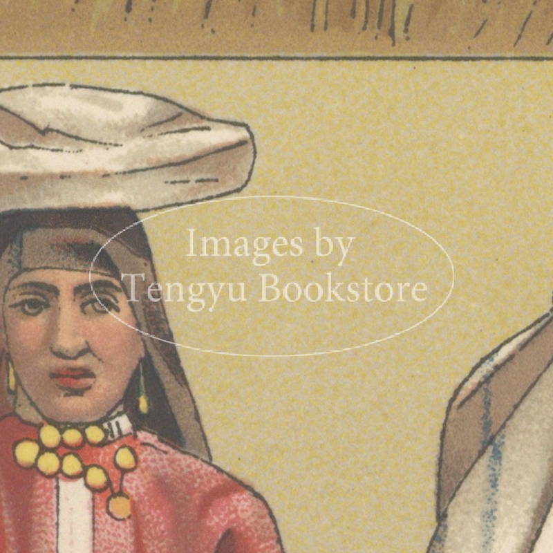 多色刷石版によってカラー印刷された、世界の歴史的衣装や民族衣装の図は、資料的な価値はもちろん、美術的にも評価の高い貴重なイラストです。