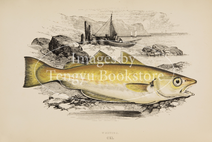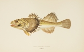 19世紀イギリスの博物学者ジョナサン・クーチ(1789–1870)の主著「ブリテン諸島魚類誌」の挿絵。グレート・ブリテン島やアイルランド島をはじめ、大小様々な島で構成されたブリテン諸島に生息する魚類を精緻な色刷木口木版画で表現した博物図鑑の名作です。