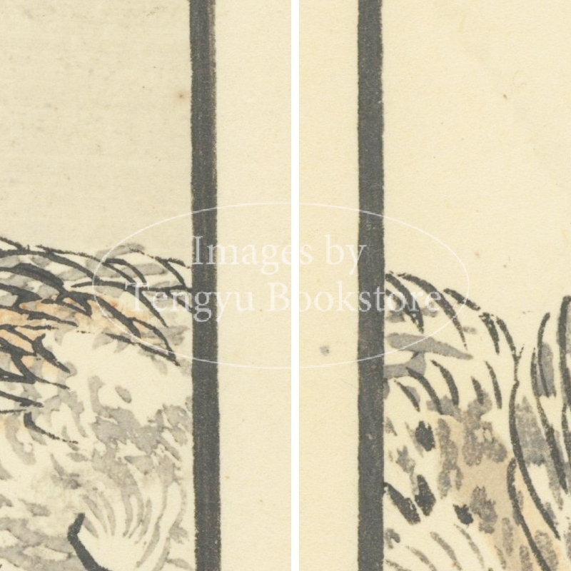 本来は2枚に分けて描かれた作品であるため、色味や図案の整合に若干の不統一があることをご了承ください。