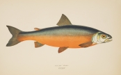 19世紀イギリスの博物学者ジョナサン・クーチ(1789–1870)の主著「ブリテン諸島魚類誌」の挿絵。グレート・ブリテン島やアイルランド島をはじめ、大小様々な島で構成されたブリテン諸島に生息する魚類を精緻な色刷木口木版画で表現した博物図鑑の名作です。