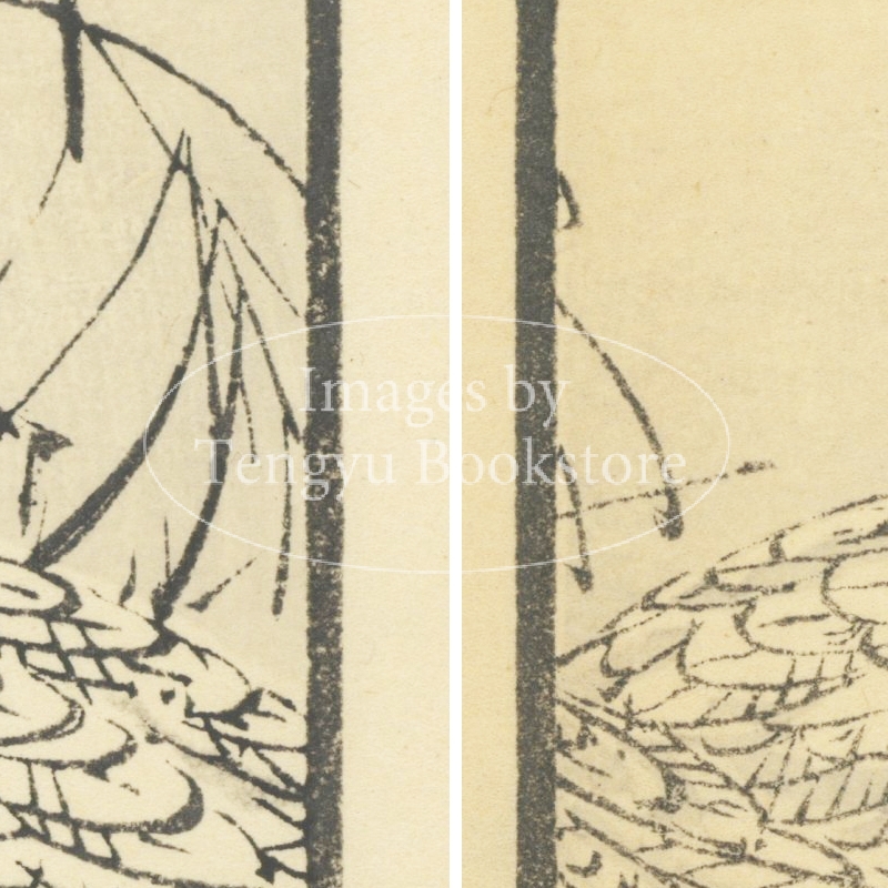 本来は2枚に分けて描かれた作品であるため、色味や図案の整合に若干の不統一があることをご了承ください。