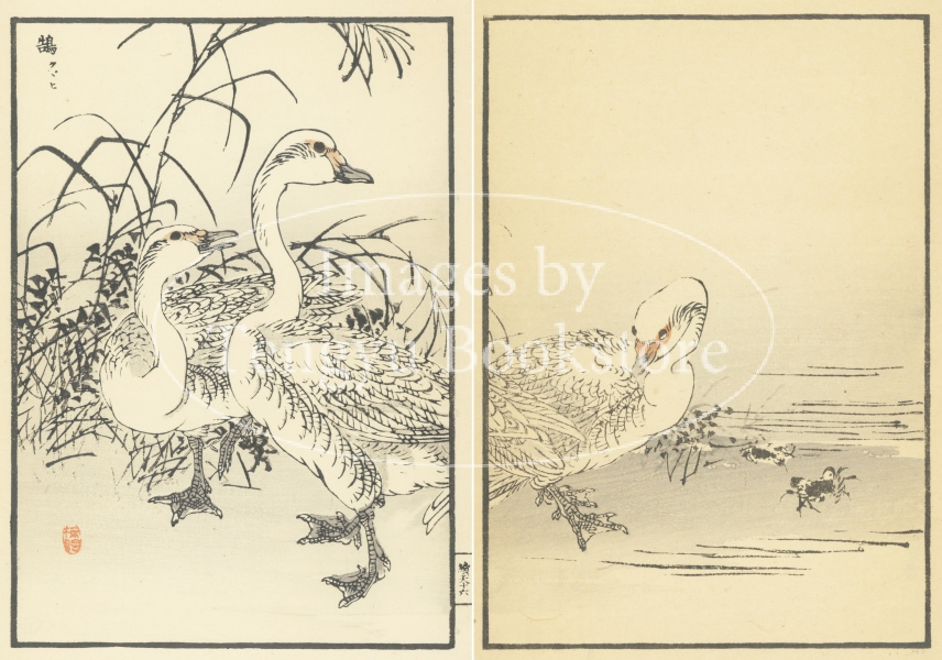 江戸時代末期から明治時代初期にかけて活躍した日本画家 幸野楳嶺(こうの ばいれい : 1844-1895)による、花鳥画の絵手本集中の1ページ。