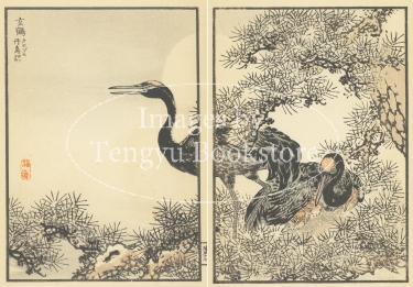 江戸時代末期から明治時代初期にかけて活躍した日本画家 幸野楳嶺(こうの ばいれい : 1844-1895)による、花鳥画の絵手本集中の1ページ。