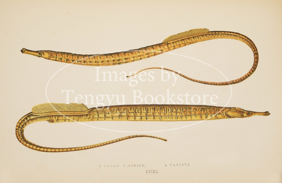 19世紀イギリスの博物学者ジョナサン・クーチ(1789–1870)の主著「ブリテン諸島魚類誌」の挿絵。グレート・ブリテン島やアイルランド島をはじめ、大小様々な島で構成されたブリテン諸島に生息する魚類を精緻な色刷木口木版画で表現した博物図鑑の名作です。