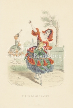擬人化動物のイラストを得意としたグランヴィルが最晩年に取り組んだ本作は、「花」を題材にした連作。擬人化した姿を与えられた花の精たちの奇妙で愛らしい物語を描いた本書は、刊行当時高い人気を博した、グランヴィルの代表作の一つです。