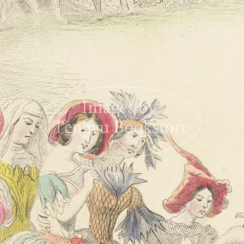 擬人化動物のイラストを得意としたグランヴィルが最晩年に取り組んだ本作は、「花」を題材にした連作。擬人化した姿を与えられた花の精たちの奇妙で愛らしい物語を描いた本書は、刊行当時高い人気を博した、グランヴィルの代表作の一つです。